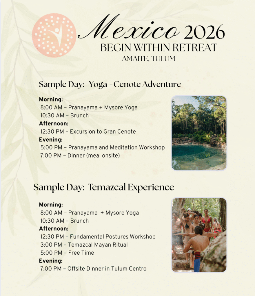 Begin Within — Tulum, Mexico is a six-day immersive Ashtanga Yoga experience designed for beginner to intermediate practitioners who feel called to dive deeper into their practice and explore the roots of the traditional Ashtanga method.